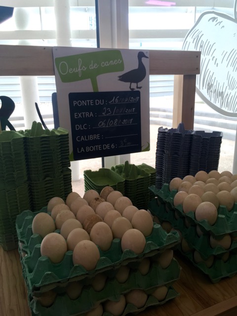 L’apéritif n’est pas en reste, non plus. On peut trouver du houmous à l’ail des ours ou des terrines de viandes (poule ou autruche) tout à fait goûteuses, avec une vraie mâche et dont l’équilibre du gras et des assaisonnements fait ressortir la qualité des volailles entrant dans leur composition. On trouve également des œufs de poule ET de cane, pas banal !