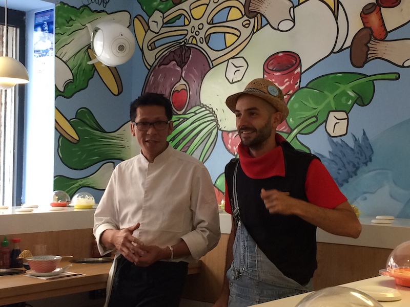 Mais l’envie d’avoir son propre restaurant est très forte et le déclic se produit lorsque qu’il découvre un concept de marmites et vapeur : le shabu-shabu. Le shabu-shabu kesaco ? Le shabu-shabu est une fondue traditionnelle japonaise, l’onomatopée correspond au bruit des ingrédients plongés dans le bouillon. Le client choisit le parfum son bouillon, ensuite il y plonge les mets qui lui font envie parmi ceux qui défilent sur un convoyeur. Viandes, poisson, nouilles, champignons et légumes sont proposés et il n’y a qu’à tendre le bras pour attraper au vol et faire cuire.