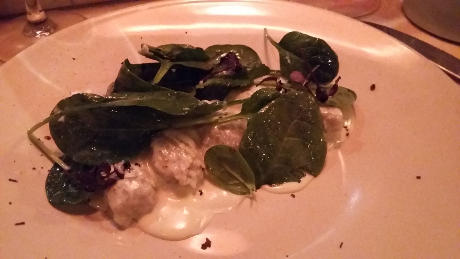 Si le plat signature d’Uptown est le bœuf cuit à basse température, on parlera surtout du Fammi Un So Riso, une fantastique réinterprétation du risotto, ainsi que de la raviole de crabe, des gnocchis, ou encore du hareng. Chaque produit est réinventé, twisté, remarié. Une excellente utilisation du sorbet, décliné ce jour-là à la clémentine pour aguicher un magret de canard, ou au vinaigre de riz pour tonifier un foie gras au bouillon.
